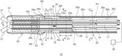 In the high-frequency forceps10 according to the present embodiment, because current is supplied to the graspingportions12 at the leading end of themanipulation part14 via thecable18, the current may partially flow toward the back end of the high-frequency forceps10 via thewires16. Because a controller, actuators, and various sensors for controlling the high-frequency forceps10 are present on the back end side of the high-frequency forceps10, propagation of high-frequency and high-voltage current to the back end side may cause noise and leakage current that affect a control system including the high-frequency forceps. The present inventor has therefore figured out various paths through which current is likely to propagate, and devised various structures for achieving sufficient insulation on the paths.