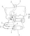In another aspect, themotor pack40050 can include aprotrusion3473 or alignment feature extending from itsbody3471 and thecap40134 of thesterile barrier housing40130 can include acorresponding recess3475 configured or keyed to receive theprotrusion3473 when themotor pack40050 is positioned within thesterile barrier housing40130 and thecap40134 is being closed. Therecess3475 could thus be configured to physically interact with theprotrusion3473 of themotor pack40050 as thecap40134 is closed, aligning or seating themotor pack40050 within thesterile barrier housing40130. In one further aspect, theprotrusion3473 can include an electrical connector and therecess3475 can include a corresponding electrical connector configured to electrically and communicably couple themotor pack40050 to thesterile barrier housing40130 when thecap40134 is closed, thereby allowing electrical signals and other controls signals to be transmitted to themotor pack40050 through the corresponding electrical connectors.