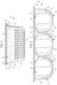 A portion of each of the scallopedledges172,174,176,178 forms an upper portion of anend portion173,175,177,179, respectively, of the dividers. As can be seen, for example, inFIG.4, theend portion173 extends inwardly from an interior surface of therear panels132 and134, theend portion175 extends inwardly from an interior surface of thefront panels126 and128, theend portion177 extends inwardly from an interior surface of therear panels134 and136, and the strengtheningrib179 extends inwardly from an interior surface of thefront panels128 and130. The end portions of the dividers can lack ribs or corrugation, such that they can be more likely to flex, particularly at their intersection with the adjacent side walls, as compared to in the middle segment of the dividers.