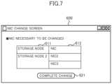 TheNIC change screen600 is a screen that instructs the user to change the NIC, and includes a change required storagenode display column611, a change requiredNIC display column612, and achange completion button621.