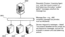 In addition to using a message bus for session management, the message based load balancing techniques can be used to determine which server to use for implementing secure VPN services (such as the tunnel services offered by the Security, Authentication andOther Support Services314 inFIG.3) when a user logs onto a managed workstation running the AWS Manager client code. Session management and the selection of security service resources share some common requirements which can be suitably addressed by the use of the AWS message bus load balancing techniques. For example, both scenarios share the following characteristics:
