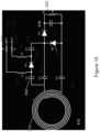 In the illustrated arrangement, diode930 (D1) is a pin diode. Thediode930 is ON, i.e. current flows through thediode930, when voltage V1 is greater than voltage V2, and OFF, i.e. no current flows through thediode930, when voltage V1 is less than voltage V2. Thediode930 is used to “switch in”capacitors902 and932 to decrease the resonant frequency of thecoil312.