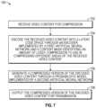 Atblock904, the system encodes the received video content into a latent code space through an encoder implemented by a first artificial neural network. The first artificial neural network may be trained against data from a fixed environment from which the video content was captured. The fixed environment may include, for example, a fixed ambient scene in the video content (e.g., in security camera footage, where building features may remain static across frames) or a fixed vantage point for captured video content (e.g., for dashcam footage, where the environment may change across frames, but each frame is captured from a fixed camera with a fixed angle of view). As discussed, by training an artificial neural network against data from a fixed environment, the system can learn the appearance of the environment from which the received video content was captured and compress video based on the learned appearance of the environment (which generally remains consistent across a plurality of videos depicting activity within the fixed environment).