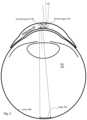 InFIG.15, theintermediate material1412 is introduced and index n2may be chosen to be significantly lower than both n1and n3so that theinterfaces1472,1572 have more optical power to correct the image-forming rays. For example, both n1and n3may be 1.5 or greater for the reasons given above. If n2is selected to be 1.4 or less, then the difference in refractive index at each interface will be at least 0.1. In some embodiments,material1512 may be Zeonex or acrylic and material1412 may be silicone (PDMS) or low index UV-curable adhesives (e.g. from Norland).Interface1472 may be concave or convex and is generally aspheric.Interface1572 may be flat or curved.Exit surface1574 may be convex spherical, with radius of curvature similar to the contact lens or cornea.