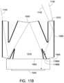 FIG.11A shows a cross-sectional view of yet another femtoimager.FIG.11A shows the same set of rays as inFIG.10A. The femtoscope design inFIG.11A is the same as inFIG.10A, except that the output baffle is not an annular ring. Rather, it is a groove with two absorbing surfaces:outer surface1186A andinner surface1186B. As shown inFIG.11A, this design of the output baffle does not block any of the image-forming rays, so the design is non-vignetting. However, it does block additional paths of extraneous rays to theimage sensor1040. Absorbing surfaces are not completely absorbing, so some low fraction of the incident light will be reflected off the baffle surfaces. As shown inFIG.11B, residual reflection ofextraneous rays1142 off theside baffle1089 would be directed to theimage sensor1040. Theouter surface1186A of the output baffle blocks these once-reflectedextraneous rays1142 from reaching the image sensor.