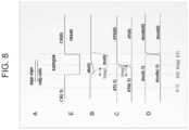 FIG.8 is an example timing diagram corresponding to the various operational stages (e.g., stages A through E) of thecomparator754 ofFIG.7 of a VADC, in accordance with at least some embodiments. In an embodiment, as shown inFIGS.7 and8, stage E shows the two operation mode at the circuit: a sample mode and a reset mode. The sample mode is performed on the falling edge and is related to observation, integration, regeneration and hold time constants of thecomparator754. The reset mode can be performed on a rising edge and is related to “cleaning” data in the memory relating to previous decisions on the respective nodes of thecomparator754.