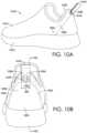 FIGS.10A-10B depict another footwear article having a bifurcated collar elevator overlapping a heel pull in accordance with an aspect of this disclosure;
