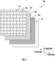 FIG.2 is an exploded plan view of the base layer, the reinforcement layer, the auxetic layer, and the lining layer ofFIG.1.
