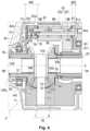 Furthermore, a portion of the oil OL discharged to the gap Rx passes through theoil groove721 provided on the inner circumference of thecylinder wall part72 of thesecond case unit7 as shown inFIG.13 andFIG.14. The oil OL that passes through theoil groove721 is supplied to thewasher55 that supports the back surface of theside gear54B and lubricates thewasher55.