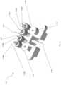A complimentary communication means424 extends downward so as to make electronic contact with electronic communications means located on the cartridge housing (seeFIGS.6,8A and9A). The complimentary communication means424 may be metal contacts such that, upon insertion, the metal contacts on the exterior surface of the cartridge housing touch and establish electronic communication between the cartridge system and the remaining components of the interferometric system (e.g., light unit, camera unit, etc.). The complimentary communication means424, as illustrated, include one or more substantially pointed or “V” shaped so as to push down into or otherwise contact the cartridge housing metal contacts. The number of complimentary communication means424 may match and align with the number of metal contacts on the exterior surface of the cartridge housing.