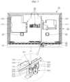 However, thelinear screw340 extends in the vertical direction and is disposed in the spaced area between two printedcircuit boards40. A length of thelinear screw340 corresponds to a moving range of thecover plate20. Accordingly, a percentage of an area allocated to the movement of thelinear screw340 relative to the rear face receiving area defined by thebackplate120 and theside cover130 is relatively larger. Accordingly, there is a possibility that components such as the at least one printedcircuit board40 adjacent to thelinear screw340 may be affected or damaged.