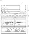 In addition, as illustrated inFIG.2C, after various transistors are formed on thesemiconductor substrate21 by using a common process, a SiOxfilm is, for example, formed on thesemiconductor substrate21 as the insulatinglayer22. Subsequently, the via V5, theinterlayer insulating layer23A, thewiring line24A, thediffusion preventing layer25A, the via V6, theinterlayer insulating layer23B, thewiring line24B, thediffusion preventing layer25B, the via V7, theinterlayer insulating layer23C, thewiring line24C, thediffusion preventing layer25C, the via V8, theinterlayer insulating layer23D, thewiring line24D, thediffusion preventing layer25D, the via V9, theinterlayer insulating layer23E, thewiring line24E, thediffusion preventing layer25E, the via V10, the insulatinglayer26A, thewiring line24F, and thediffusion preventing layer25F are formed in order by using, for example, a W wiring process or a Cu wiring process. Here, theinterlayer insulating layers23A,23B,23C,23D, and23E are formed by using, for example, SiOC. The wiring lines24A,24B,24C,24D, and24E are each formed under a wiring rule of a thickness of 250 nm or less, for example, and an L/S (line and space) of 120/120 mm or less, for example. Thediffusion preventing layers25A,25B,25C,25D, and25E are each formed to have a thickness of 30 nm by using, for example, SiC. The insulatinglayer26A is formed to have a thickness of 1500 nm by using, for example, SiOx. Thediffusion preventing layer25E is formed to have a thickness of 50 nm by using, for example, SiNx. The via V10 is formed to have a thickness of 600 nm, for example.