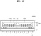 For reference, a structure of thesemiconductor device10000 according to the present example embodiment is referred to as a 2.5D package structure, and the 2.5D package structure may be a relative concept with respect to a 3D package structure in which all semiconductor chips are stacked together and there is no interposer. Both the 2.5D package structure and the 3D package structure may be included in a system-in-package (SIP) structure. Thesemiconductor device10000 of the present example embodiment may also be a type of semiconductor package. However, because thesemiconductor device10000 includes thesemiconductor package1000asuch as thesemiconductor package1000 ofFIG.15, the term “semiconductor device” is given to thesemiconductor device10000 to make a terminological distinction between thesemiconductor device10000 and thesemiconductor package1000a.Hereinafter, the same concept may also be applied to asemiconductor device10000aofFIG.17.