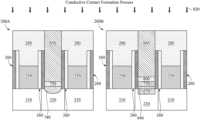 In some embodiments, the metal deposition is selective such that it is deposited on the nitride layers790 and800, but not on theILD280. This helps with the trench filling performance, as well as obviating the need to perform a polishing process such as chemical mechanical polishing (CMP) process to remove the metal material deposited on theILD280. In other embodiments, however, the conductivecontact formation process820 may not be selective, and thus theILD280 may have metal materials deposited thereon, which may be removed by a CMP process performed later.