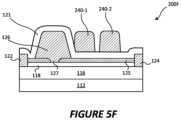 FIGS.5F,5G and5H are schematic cross-sectional views of transistor devices according to further embodiments.
