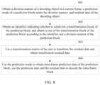 If the transformation division identifier indicates that the transformation block needs subdivision and the prediction block employs square division, multiple square transformation matrixes smaller than the divided prediction block are obtained. For example, once division is performed, new transformation blocks are obtained, and their size is half of the size of the undivided transformation block.