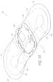 Hinge portions132 are relatively thin, even more flexible portions offlexible body110. They allowflexible body110 to flex freely at the area where it is joined tohousing115. This flexibility enhances comfort, since when the patient moves,housing115 can freely lift off of the patient's skin. Electrode traces311,312 are also very thin and flexible, to allow for patient movement without signal distortion. Borders133 are portions offlexible body110 that is thinner than immediately adjacent portions and that provide for a smooth transition fromflexible body110 to a patient's skin, thus preventing edge-lift and penetration of dirt or debris belowflexible body110.