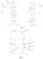Each annulus1 generally has afirst side12 and asecond side11, and a central axis A that extends between thesides11,12. Thesides11,12 may both be generally planar and may extend substantially parallel with one another. An outer surface of the annulus1 is formed between thesides11,12, and extends circumferentially around the central axis A. A central bore oraperture6 is formed through the annulus1 and extends coaxially with the central axis A. The annulus1 may have a relatively thin height or thickness measured in a direction of the central axis A, and for example, when compared to the width of the annulus1 measured in a direction perpendicular to the central axis A. Each annulus1 is typically manufactured from one or more of various biocompatible materials, and in an exemplary embodiment, of one or more hard biocompatible materials.