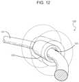 In some embodiments, the inner dimension of a tube (or the inner dimension of the middle section of a tube having one or more flared end sections) may be less than 5 millimeters, or less than 4 millimeters, or less than 3 millimeters, or less than I millimeter, or less than 0.8 millimeters, or less than 0.6 millimeters, or less than 0.5 millimeters, or less than 0.4 millimeters. In some embodiments, the inner diameter of a tube may be approximately I millimeter, or approximately 0.8 millimeters, or approximately 0.6 millimeters, or approximately 0.5 millimeters, or approximately 0.4 millimeters. The inner dimension of the tube may be substantially the same or slightly larger than the dimension of a wire (e.g., the cross-section of the wire) that may go through the tube and may move along the tube, as discussed elsewhere in the application. Merely by way of example, the difference between the inner dimension of the tube and the dimension of the wire may be 0.5%, or 1%, or 2%, or 4%, or 5%, or 6%, or 8%, or 10%, or larger than 10% of the inner dimension of the tube (or the inner dimension of the middle section of a tube having one or more flared end sections). If a tube has one or more flared end sections (see, e.g.,FIGS.2C,2D,3C, and4A-4D), the inner dimension of the middle section may be smaller than the inner dimension of a flared end section thereof. In this situation, the inner dimension of the middle section may provide more constraint on the dimension of a wire than the inner dimension of a flared end section. The difference between the inner dimension of an opening end of a flared end section and the inner dimension of the middle section of the tube may be 0.5%, 1%, 2%, 4%, 5%, 6%, 8%, 10%, 15%, 20%, or larger than 20% of the inner dimension of the middle section of the tube. From an opening end toward the middle section (between the two opening ends) along the length of a tube, the outer dimensions (or perimeters) of outer cross-sections in the flared end section may change. The change (e.g., increase, decrease) in the outer dimensions (or perimeters) of the outer cross-sections in a flared end section may be gradual, or not gradual. Merely by way of example, the outer dimensions (or perimeters) of the outer cross-sections in a flared end section may change gradually in some part(s) of the flared end section and may change abruptly in other part(s) of the flared end section. As another example, the outer dimensions (or perimeters) of the outer cross-sections in a flared end section may be constant or substantially constant in some part(s) of the flared end section and may change gradually or abruptly in other part(s) of the flared end section. From an opening end toward the middle section (between the two opening ends) along the length of a tube, the inner dimensions (or perimeters) of the cross-sections of the tubular passage in the flared end section may decrease. The decrease in the inner dimensions (or perimeters) of cross-sections of the tubular passage in a flared end section may be gradual to avoid a sharp edge in the tubular passage in the flared end section. The transition from the middle section to a flared end section may be smooth to avoid a sharp edge in the tubular passage at the interface of the middle section and the flared end section.