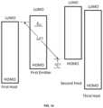 FIG.6B shows the relative HOMO and LUMO energy levels of the first emitter, the first host, and the second host in a one emitter, two hosts system device according to some embodiments. The HOMO level of the first host shallower than the HOMO level of the first emitter by ΔE2.