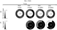 FIGS.18 C, D, and E depict a series of rate images obtained at various days during the course of pro-angiogenic therapy. The images represent findings expected for a patient exhibiting a strong response (C), an intermediate response (D), and a poor response (E) to therapy.