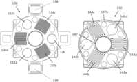 As shown inFIG.1, the first plurality of non-patterned conductive regions132a-132cmay be arranged in a radially symmetric manner on a first surface (e.g., on the first plate130). For example, three non-patterned conductive regions may be equally distributed around a center point of thefirst plate130, or arranged about 120 degrees apart from each other. Similarly, the first plurality of patternedconductive regions134a-134cmay be arranged in a radially symmetric manner on the first surface (e.g., on the first plate130). For example, three patterned conductive regions may be equally distributed around the center point of thefirst plate130, or arranged about 120 degrees apart from each other. The first plurality of non-patterned conductive regions132a-132cand the first plurality of patternedconductive regions134a-134cmay be arranged around thefirst plate130 in an alternating manner.