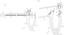 As mentioned, handle16 includesdistal arm18 andproximal arm20 coupled at joint22. In one aspect, joint22 may be a portion of distal arm18 (as shown), may be a portion ofproximal arm20, or may be a separate element. Joint22 may include a torsion spring or other biasing member (not shown) such that handle16 may be biased to return to an equilibrium position. For example, a user may hold handle16 with one hand, and may squeeze handle16 to compress and moveproximal arm20 towarddistal arm18 in order to extenddrive wire14 distally relative toouter tube12.