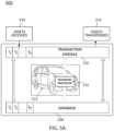 FIG.5A illustrates anexample vehicle configuration500 for managing database transactions associated with a vehicle, according to example embodiments. Referring toFIG.5A, as a particular transport/vehicle525 is engaged in transactions (e.g., vehicle service, dealer transactions, delivery/pickup, transportation services, etc.), the vehicle may receive assets510 and/or expel/transfer assets512 according to a transaction(s). Atransport processor526 resides in thevehicle525 and communication exists between thetransport processor526, adatabase530, atransport processor526 and thetransaction module520. Thetransaction module520 may record information, such as assets, parties, credits, service descriptions, date, time, location, results, notifications, unexpected events, etc. Those transactions in thetransaction module520 may be replicated into adatabase530. Thedatabase530 can be one of a SQL database, an RDBMS, a relational database, a non-relational database, a blockchain, a distributed ledger, and may be on board the transport, may be off board the transport, may be accessible directly and/or through a network, or be accessible to the transport.