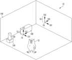 With respect toFIGS.1A and1B, environment/world coordinatesystem108 defines a shared coordinate space for bothreal environment100 andvirtual environment130. In the example shown, the coordinate space has its origin atpoint106. Further, the coordinate space is defined by the same three orthogonal axes (108X,108Y,108Z). Accordingly, a first location inreal environment100, and a second, corresponding location invirtual environment130, can be described with respect to the same coordinate space. This simplifies identifying and displaying corresponding locations in real and virtual environments, because the same coordinates can be used to identify both locations. However, in some examples, corresponding real and virtual environments need not use a shared coordinate space. For instance, in some examples (not shown), a matrix (which may include a translation matrix and a Quaternion matrix or other rotation matrix), or other suitable representation can characterize a transformation between a real environment coordinate space and a virtual environment coordinate space.