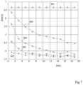 Acurve502 shows the variation of the rate of a signal in a distributed network, where there exists an offset between the frequencies of the transmitted signals and the frequencies of the received signals and where no adjustment is performed.Curve502 has a poor rate and this, from as soon as the first signals transmitted by the antenna system to the radio devices.Curve502 slightly decreases over the first three transmissions and remains, in this example, relatively stable on a very low rate value of between 3.5 to 4 bits per second.