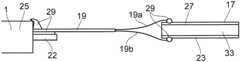 Theneedle73 is slidably received in aneedle guide tube75 which passes along aslot77 in aguide ring79 that is fixed to thetubular housing69. Theslot77 of theguide ring79 constrains the movement of theneedle73 so that it can only move in the axial direction relative to thetubular housing69, and not sideways.
