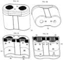 A preferred embodiment of an electrode-based stimulator is shown inFIG.4A. A cross-sectional view of the stimulator along its long axis is shown inFIG.4B. As shown, the stimulator (730) comprises two heads (731) and a body (732) that joins them. Each head (731) contains a stimulating electrode. The body of the stimulator (732) contains the electronic components and battery (not shown) that are used to generate the signals that drive the electrodes, which are located behind the insulating board (733) that is shown inFIG.4B. However, in other embodiments of the description, the electronic components that generate the signals that are applied to the electrodes may be separate, but connected to the electrode head (731) using wires. Furthermore, other embodiments of the description may contain a single such head or ore than two heads.