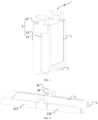 In an example, as shown inFIGS.3-6, the foldable treadmill further includes afirst drive part4. Thefirst drive part4 includes a firstdrive output unit41 and a firstdrive transfer unit42. The firstdrive output unit41 is arranged in the intermediaterunning board sub-module22, and the firstdrive output unit41 is threadedly coupled to thefirst motion unit311 through the firstdrive transfer unit42. The firstdrive output unit41 outputs a driving force to the firstdrive transfer unit42, bringing the firstdrive transfer unit42 into rotation. The firstdrive transfer unit42 is threadedly coupled to the H-shapedconnection rod3111 of thefirst motion unit311, and thefirst motion unit311 can move on the firstdrive transfer unit42 along a longitudinal straight line.