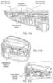 FIGS.39A-E show different locations for the wFOV and nFOV near-IR illuminators at a mirror head for the One-Box Interior DMS Rearview Mirror Assembly;