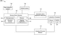 Theinfrared camera130 is configured to record eye movements of the eyes of the driver. Theinfrared camera130 detects the thermal energy or heat emitted by an object under observation and converts the detected thermal energy into an electronic signal. The electronic signal is processed to produce an image corresponding to the object. The infrared camera is configured to measure a plurality of points on the driver's face. In an aspect, theinfrared camera130 detects features of the face, including the eyes, by comparing the detected thermal energy with a reference temperature (previously detected thermal energy) of the object. In an example, the object is a facial image of the driver or an eye position on the facial image. In one example, theinfrared camera130 is a near-infrared camera, a broad-spectrum infrared camera, a visible camera and a video camera. In an example, theinfrared camera130 is mounted inside the dashboard or on top of the rear-view mirror of the vehicle. In an example, theinfrared camera130 is an infrared Raspberry Pi camera, which is configured to detect drowsiness in low light conditions. In an aspect, theinfrared camera130 is placed strategically to detect the eye movements and any unusual blinking time accurately. The attention diversion monitor may be used to determine when the driver is looking down or from side to side instead of looking straight ahead, which indicates attention diversion. The eye position may be used in conjunction with the head position to determine whether or not the driver can see the side mirrors, when the driver is looking away from straight ahead, such as looking at a cell phone, a passenger or a console screen.