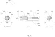 Referring toFIGS.3(a) and (b), in one embodiment, the solidphase microextraction device200 includes aclocking feature305, which is configured to fix a radial orientation of theplanar surface230 with respect to the receivingdevice100. “Clocking” is intended to connotate the passage of a hand around an analogue clockface as a paradigm for indicating radial orientation of theplanar surface230. In one embodiment, theclocking feature305 includes at least one of an indentation or a protrusion corresponding to at least one of a complimentary protrusion or complimentary indentation of the receivingdevice100, such that when the solidphase microextraction device200 is mounted to the receivingdevice100, theclocking feature305 limits the radial orientation of the solidphase microextraction device200 with respect to the receivingdevice100 to a predetermined number of radial positions. The predetermined number of radial positions may consist of a single radial position, two radial positions, or may include any suitable lager number of radial positions. The solidphase microextraction device200 may include visual indicia of the radial orientation of the at least oneplanar surface230 on thereceptacle mount210. Such visual indicia may serve to indicate the radial orientation of the at least oneplanar surface230 when theplanar surface230 itself is not visible.