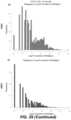 Table 1 is a summary of sequencing data metrics. By staining the cells with the mixture of 1% hot antibody:99% cold antibody prepared using the 1:100 diluted stock, the antibody oligonucleotides accounted for 2.4% of the total raw reads in the sequencing data. However, as shown inFIG.29 panels (a)-(f) andFIGS.30B,31B, and32B, a distribution histogram of the numbers of molecules of antibody oligonucleotides detected after recursive substitution error correction (RSEC) or distribution-based error correction (DBEC) did not include a clear signal peak if the cells were stained with the mixture of 1% hot antibody:99% cold antibody prepared using the 1:100 diluted stock. RSEC has been described in U.S. patent application Ser. No. 15/605,874, filed on May 25, 2017, the content of which is incorporated herein by reference in its entirety.