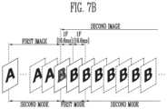 In such an embodiment, as shown inFIG.7B, a target luminance is implemented from a third frame when the first image is changed to the second image. Hence, the predetermined period Ts may be set such that two initial frames after the change in image are displayed in the first mode and are displayed in the second mode from the third frame.