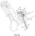 FIG.48 is an isometric view of a guide arm of a sagittal sizing guide assembly disposed above an ankle joint in accordance with some embodiments.