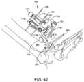 FIG.40 is an isometric view showing drilling using the tibia trial to locate peg holes in the distal surface of the tibia.