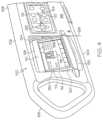 FIG.8 is a perspective view of a portion of the interior region of the housing of the user module ofFIG.4 including an illustrative embodiment of a pivot coupler;