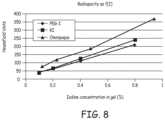 FIG.8 is a plot of radiopacity as a function of iodine concentration, with an iodinated polyethylene glycol (PEG-I), potassium iodide (KI) and iodine (OMNIPAQUE) being compared.