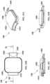 It is also appreciated that, as seen inFIG.54D and enlargement D thereof that protrusions1660 offinger portions1648 and1658 ofneedle shield250 do not engageslots1560 and1564 of themodule housing1500 by virtue of engagement withribs1114 of themain housing portion102 andribs1314 of thecover portion104 withprotrusions1660 offinger portions1648 and1658, thus permitting relative movement ofmodule housing1500 relative toneedle shield250. It is further seen in enlargement I inFIG.52D thatfinger portions1646 and1656 do not fully engageslots1560 and1562 of themodule housing1500.