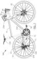 First Alternate Embodiment Construction—FIGS.5 &6With reference toFIGS.5 &6, the firstalternate embodiment102 of a bicycle making use of the first alternate embodiment rear derailleur electrical actuator of the present invention comprisesbicycle frame9,rear derailleur110 serving toalternate chain11 betweensprockets12 of reardrive hub assembly13,front derailleur114 serving toalternate chain11 betweenfront sprockets assembly15 offront pedals assembly16,operator command panel118, howwire anemometer19, rear derailleur switches20, front derailleur switches21,speed sensor22,seat force sensor123 andchain movement sensor124.