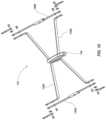 Referring toFIGS.10 and11, aspreader mechanism112 is shown in accordance with an embodiment of the present invention. Thespreader mechanism112 includes twoouter structures140A and140B that are configured to hingedly transition between a collapsed or folded state (not shown) and an extended or deployed state (such as shown inFIGS.10 and11) as will be appreciated by those of ordinary skill in the art. Thespreader mechanism112 further includes twoinner structures142A and142B that are similarly configured to transition between a collapsed or folder state and an extended or deployed state. Theinner structures142A and142B are coupled to one another and are coupled to correspondingouter structures140A and140B such that all of the structures extend and collapse as a unit. In other words, theinner structures142A and142B fold in a manner similar to theouter structures140A and140B.Inner structures142A and142B of thespreader mechanism112, when in an extended or deployed state, act as cross-braces for thespreader mechanism112 providing added support and stability to theladder100 as compared to conventional spreaders used in a stepladder.