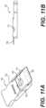 FIGS.11A and11B are perspective and a schematic side view showing additional features of thecartridge100, aplatform102, a well104, anextended lid106, anabutment108 on the platform and adisk110 attached to thelid108, all of which are inserted in a receiver before fluid is injected into thewell104.FIG.11B is a schematic representation of the well104 and thedisk110 which is still attached to a bottom of thelid106.