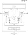 FIG.2A illustrates a block diagram of an examplelogic base layer130 suitable for use in implementing some embodiments of the present disclosure. Thelogic base layer130 includes anHBM controller220 that interfaces to theconnections102 and104 for the on-package memories that are coupled to thelogic base layer130 atHBM sites235. Thelogic base layer130 also includesmemory device controllers212 and214 that interface, respectively, to theconnections112 and114 to the off-package memory that includesmemory modules145. Thelogic base layer130 also includes aprocessor interface215 that directly couples thelogic base layer130 to theprocessor110 through theconnection106. In an embodiment, thelogic base layer130 includes one or moreadditional processor interfaces215 that are coupled to one or more additional processors that may be the same asprocessor110 or different. In an embodiment, thelogic base layer130 includes at least one additional interface that is coupled to one or more other devices that access a combination of the on and off package memory. Any processor or device that accesses the on and off package memory issues requests to thelogic base layer130 as there is no alternate path to/from either the HBM stacks or the off-package memory.