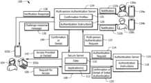 If atstep920, the confirminguser device134a,bdetermines that the confirminguser136a,bis authenticated, the confirminguser device134a,bmay provide authentication results, for use bydevice102a,b, indicating theuser136a,bis authenticated atstep922. If theuser104 is also verified bydevice102a,b, the confirminguser device134a,bmay receive an indication of this and display an indicator366 reflecting that theuser136a,band theuser104 are verified. If atstep920, the confirminguser device134a,bdetermines that the confirminguser136a,bis not authenticated, the confirminguser device134a,bmay provide authentication results, for use bydevice102a,b, indicating theuser136a,bis authenticated at step924. In such cases, the requestinguser104 is not allowed to access thesecure server108.