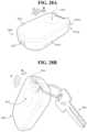 FIGS.28A and28B are perspective views of a dual-radio radiotag device2800 with both a BT and a cellular radio. The device includes a radiolucenthard case2814, shown here with clamshell construction withupper case member2814aandlower case member2814bjoined atseam2814c. Optionally a battery access port may be provided on an undersurface of thecase2814, or in other embodiments the devices may be sealed and may be inductively rechargeable. AUSB port2817 for recharging and data transfer is shown at the back lower end of the device.