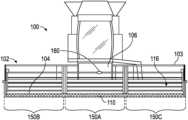 Referring now to the drawings,FIG.1 illustrates anagricultural harvester100 in accordance with an example of the present disclosure. For exemplary purposes only, the agricultural harvester is illustrated as a combine harvester. Theharvester100 includes aheader102 attached to a forward end of theharvester100, which is configured to cut crops, including (without limitation) small grains (e.g., wheat, soybeans, grain, etc.), and to induct the cut crops into afeederhouse106 as the harvester moves forward over a crop field.